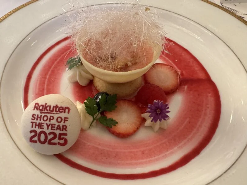 デザートで出されたスイーツには「SHOP OF THE YEAR2025」の文字が描かれていました。